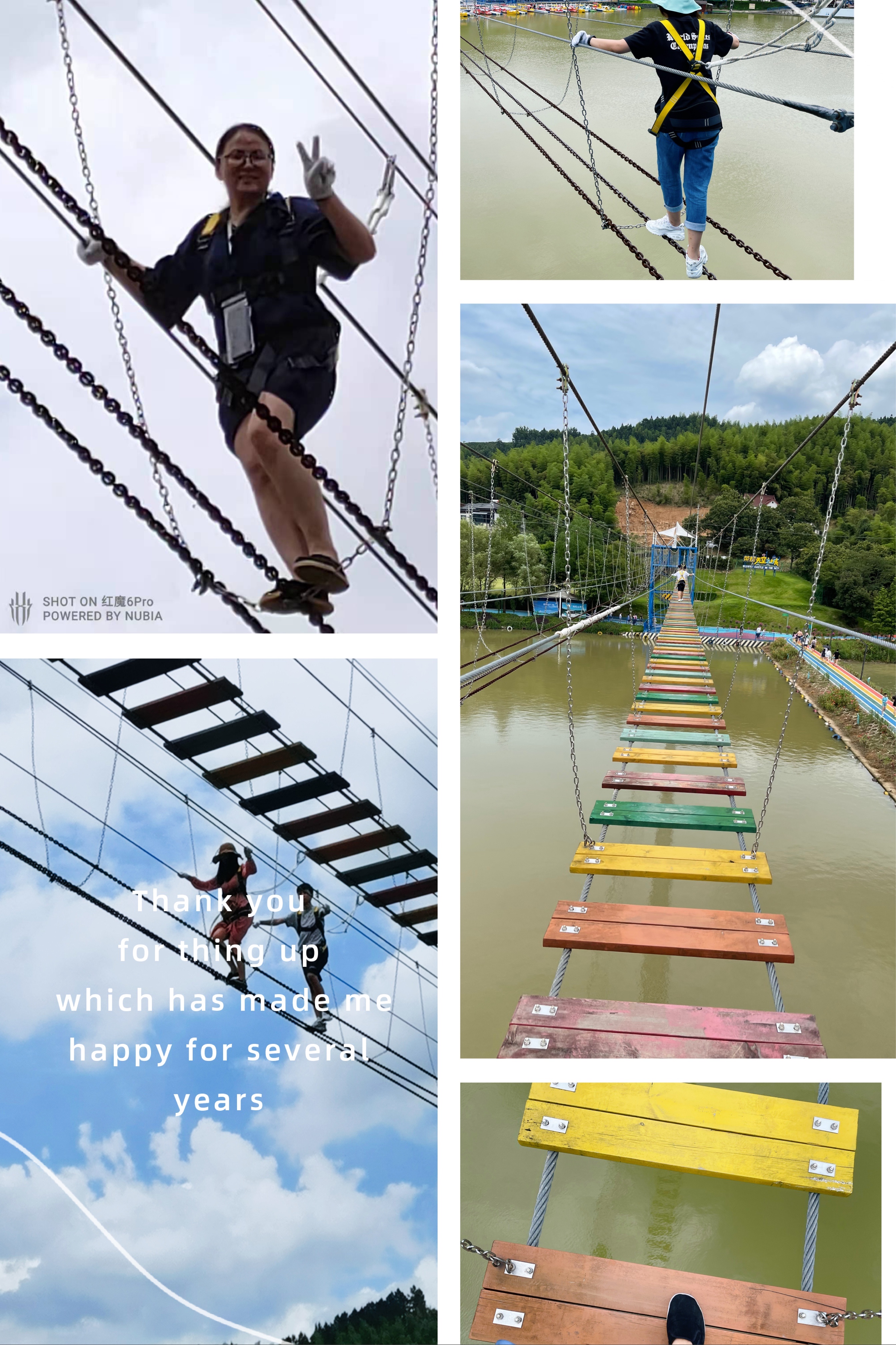 空中漂流完后,活力四射的少男少女們去體驗高空滑索、網紅橋、水上樂園沖浪、獨木橋等,大家在面臨艱巨任務或遇到困難時能堅定信心,勇于挑戰、敢于超越!
